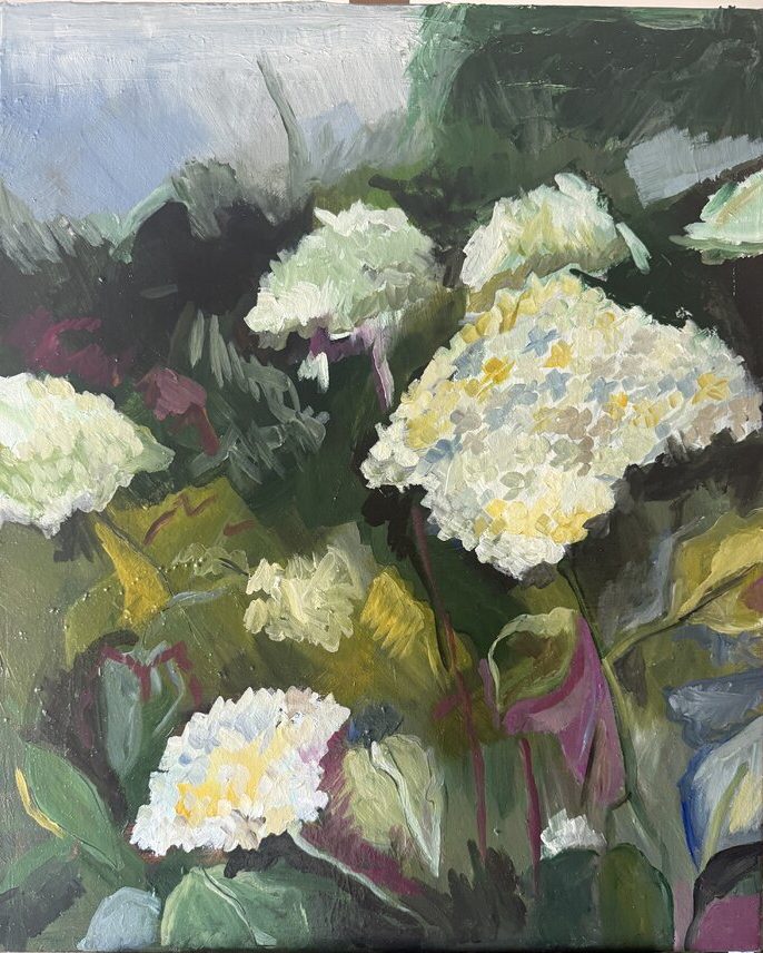 Capturer l’essence fugace d’un jardin. Tous les printemps, je m’émerveille face au jardin de Nany. Les pivoines au parfum délicat côtoient les roses et les hortensias. Par cette série de peinture de fleurs à l’huile, je cherche à retrouver couleurs subtiles et l’atmosphère apaisante d’un jardin au printemps. Chaque coup de pinceau est comme un coup d’oeil à ce jardin enchanté et est un hommage à la beauté éphémère de la nature qui inspire tout espace de vie.